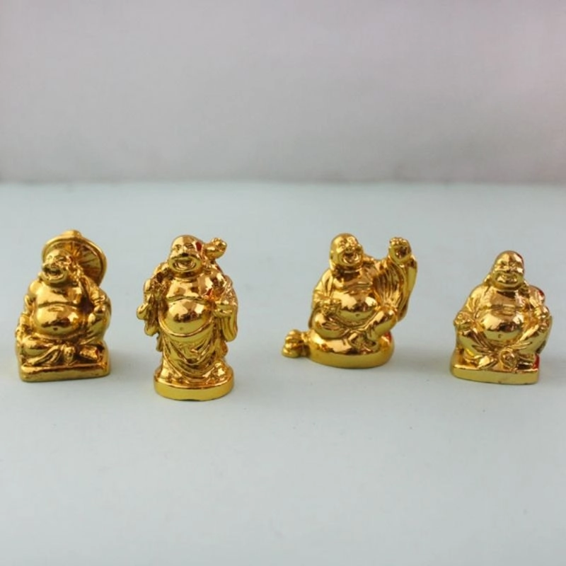 4 mini golden Laughing Buddha statues