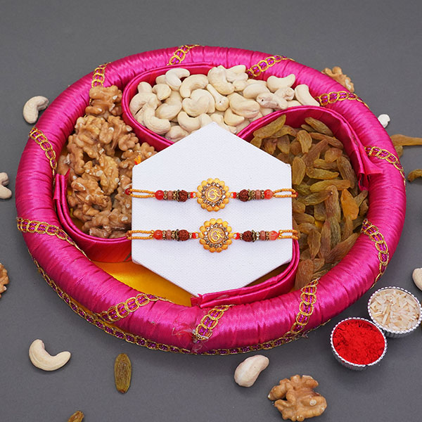 Being surrounded by two strong brothers is the biggest protection a sister can have. The elegant and wonderful looking wooden on Rakhis is a wonderful to express your love and care to them. The beautifully decorated Rakhi thali in this Rakhi with dry fruits combo will add more spark and traditionalism in your Rakhi celebrations.