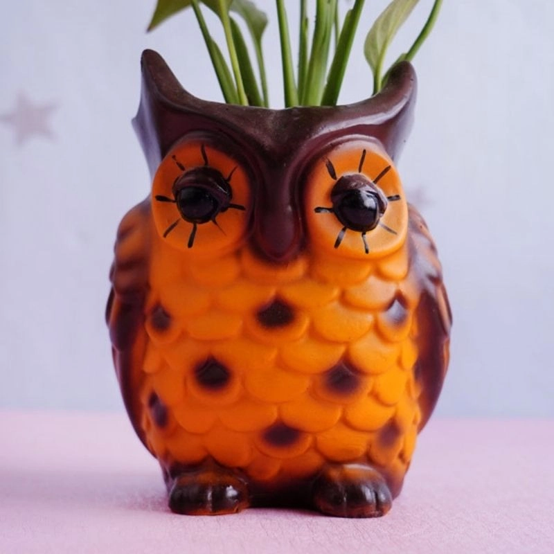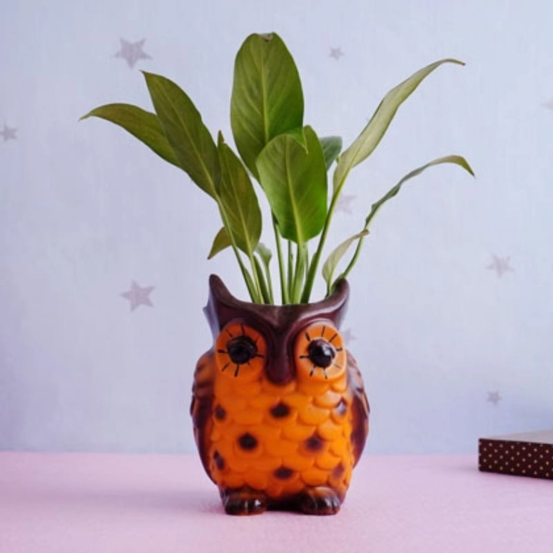 Pot Type: An adorable owl pot holding peace lily plant