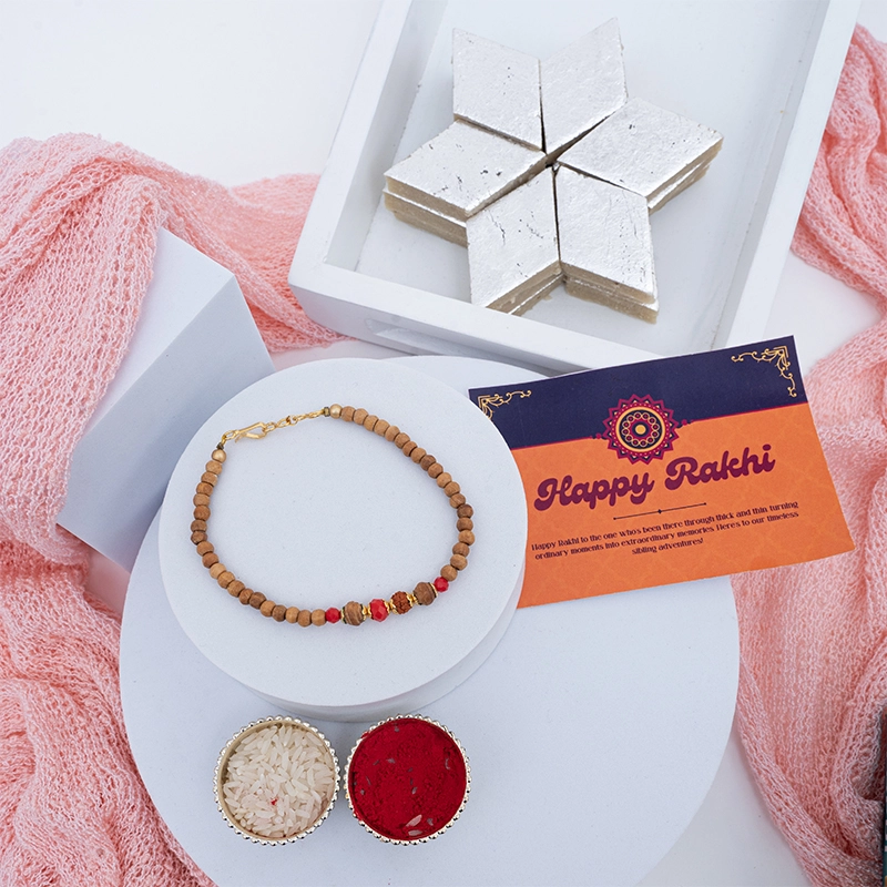 Divine Duo Rakhi Hamper with Kaju Katli & Pooja Thali